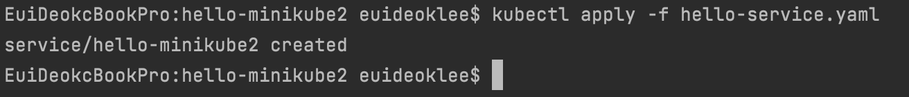 마찬가지로 다음의 명령어를 통해 hello-service.yaml을 적용하도록 한다.