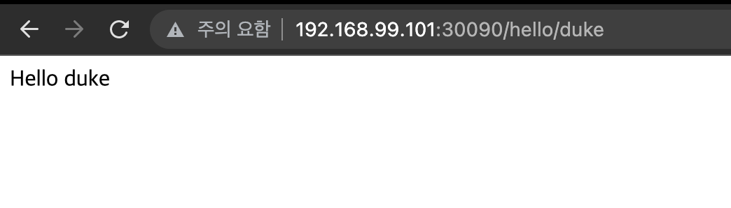 예제에 사용될 앱은 http://[ip:port]/hello/[이름]의 형식으로 호출되며 이름을 넘기면 리턴해주는 심플한 앱이다.