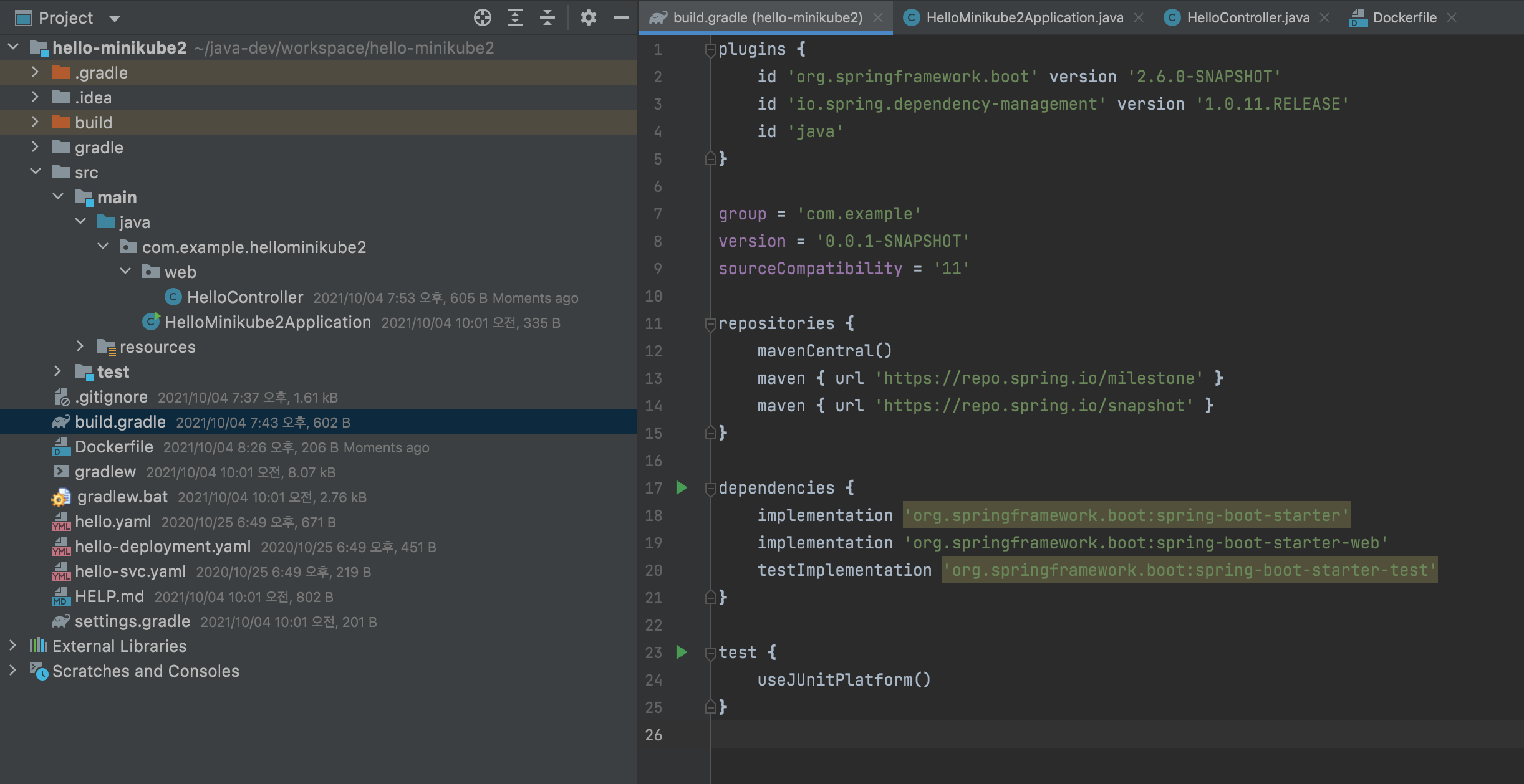 - hello-minikube2 앱을 spring boot에 gradle 기반으로 작성한다.