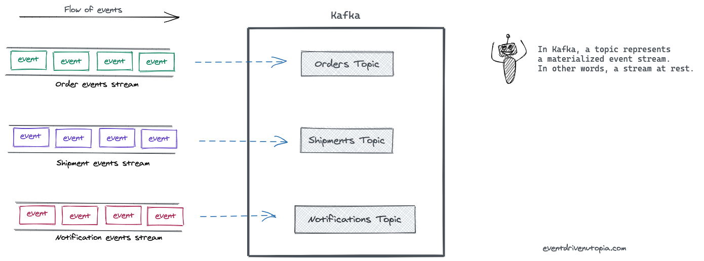 파티션에 대해 공부하기 전에, 카프카에서 사용되는 몇 가지 개념과 그것들이 파티션과 어떻게 연관이 있는지를 알아보자. Events 이벤트란, 과거에 일어난 사실을 뜻한다. 이벤트는 발생함으로 인해 변화된 상태를 가지고 시스템 사이를 오가는, 불변하는 데이터이다. Streams 이벤트 스트림이란, 관련된 이벤트들을 뜻한다. Topics 이벤트 스트림이 카프카에서는 토픽이란 이름으로 저장된다. 카프카의 세계에서는 토픽이 구체화된 이벤트 스트림을 뜻한다. 토픽은 연관된 이벤트들을 묶어 영속화하는데, 이는 데이터베이스의 테이블이나 파일 시스템의 폴더들에 비유할 수 있다. 토픽은 카프카에서 Producer 와 Consumer 를 분리하는 중요한 컨셉이다. Producer 는 카프카의 토픽에 메시지를 저장 (Pus..